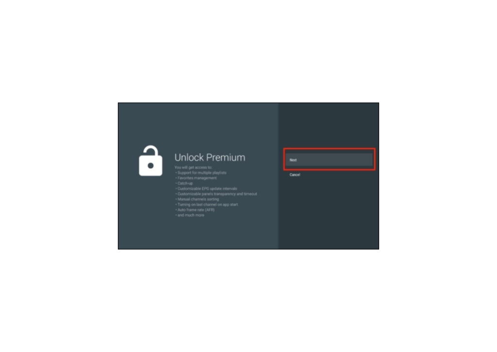 Si vous essayez d’accéder à une fonctionnalité premium sans un abonnement premium, TiviMate sur FireStick vous invitera à effectuer la mise à niveau. Par exemple, si vous souhaitez ajouter une chaîne à vos favoris, l’application vous demandera de passer à la version premium. Si vous préférez continuer avec la version gratuite, vous pouvez simplement cliquer sur « Annuler ».